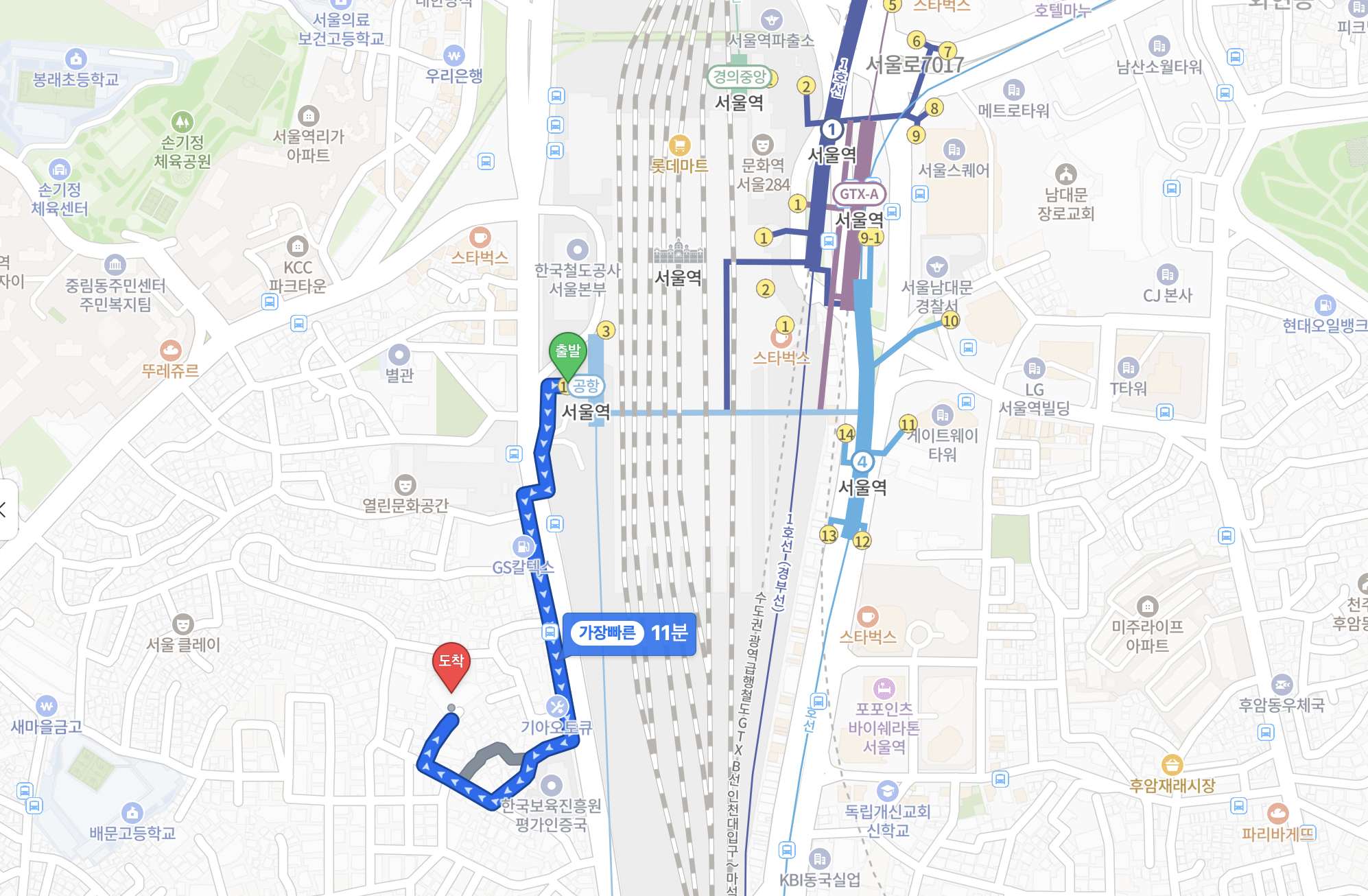 위치는 서울역 뒷쪽 출구인 공항철도 15번 출구로 나와 네이버 지도상 약 11분 걸리는 거리에 위치해 있었다.