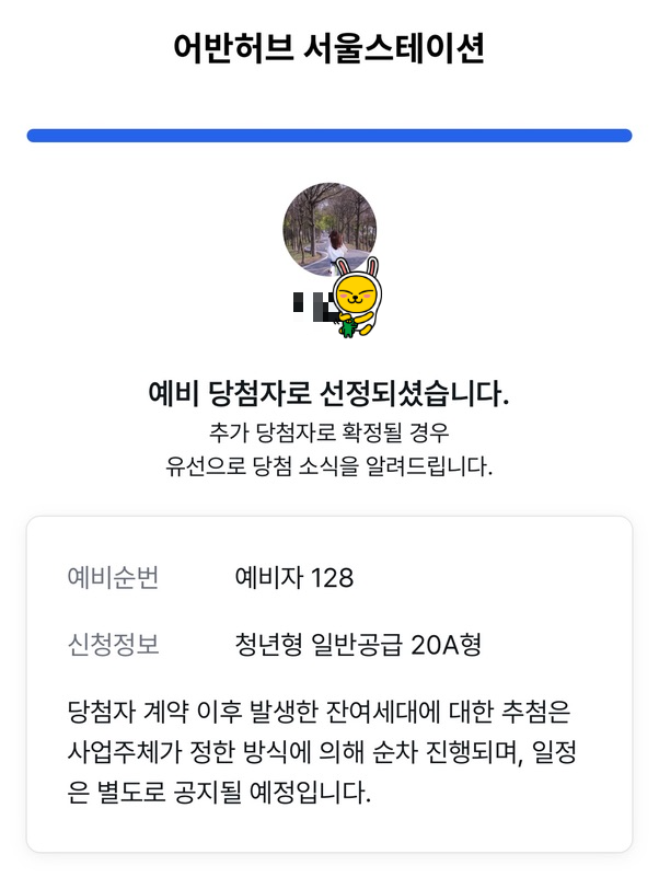 지난 25년 4월 모집공고가 났던 서울역 청년안심주택에 청약 신청을 했었고, 예비순번 128번으로 예비당첨이 되었다.