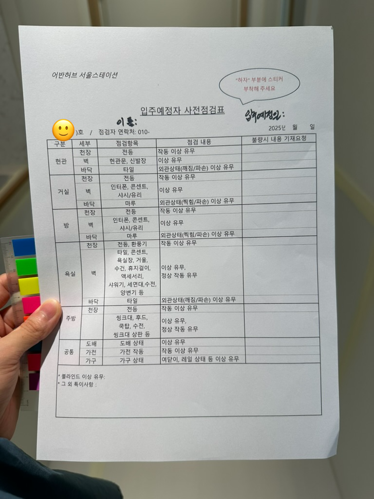 1층 사무실 같은 곳에서 사전점검표 종이를 받고, 내가 배정받은 호실로 안내받았다.