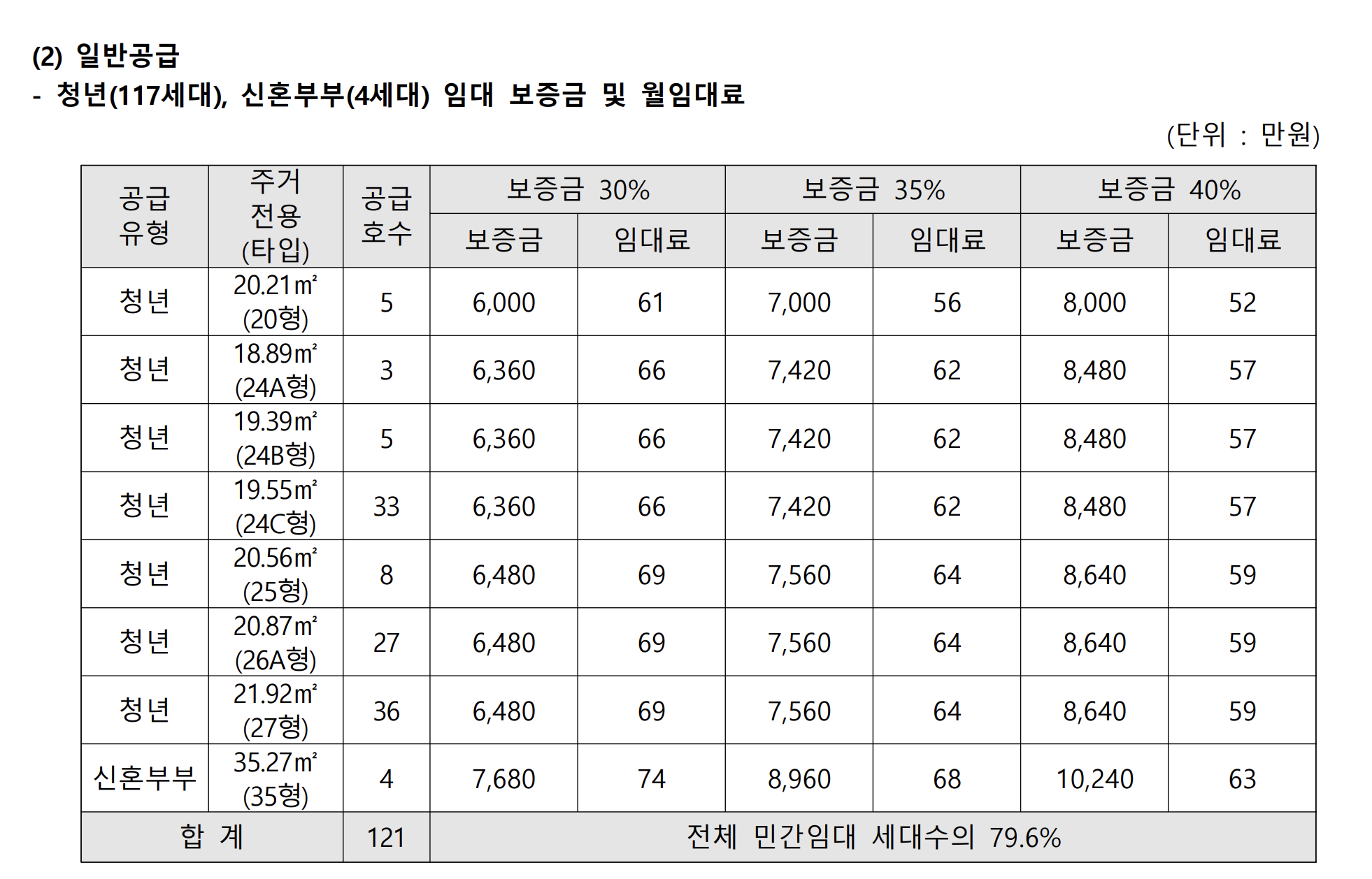 홈페이지에도 임대보증금 비율이 정리되어 있기는 한데, 위 이미지는 최초모집 공고문에서 가져왔다.