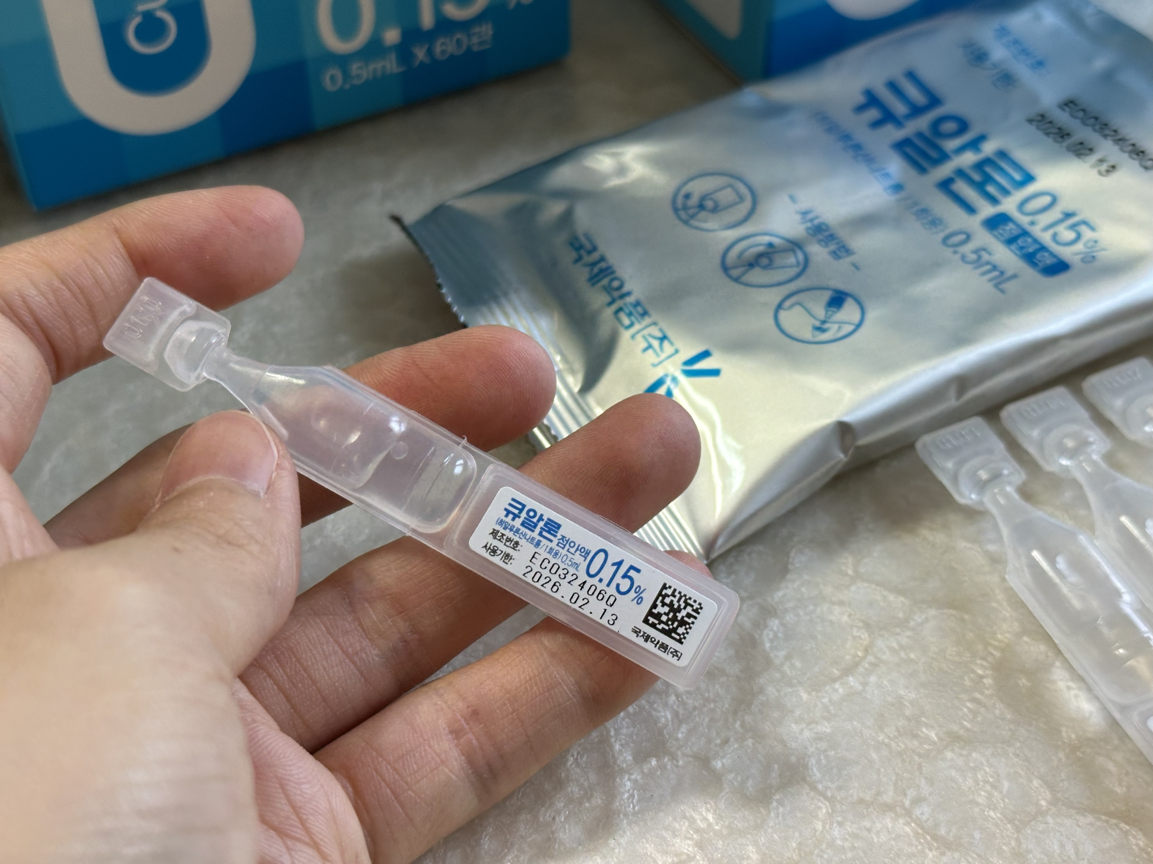 참고로 내가 처방받은 인공눈물은 큐알론 0.15% 였는데, 이전까지 0.3%만 사용했어서 병원 접수처의 간호사분께 여쭤보니, 원장님이 특별한 이유 아니면 0.1 또는 0.15를 추천하신다고 하셨다. 실제로 사용해보니 차이는 잘 모르겠고, 건조증 완화에는 똑같이 도움을 주는 것 같아서 잘 사용하는 중이다.